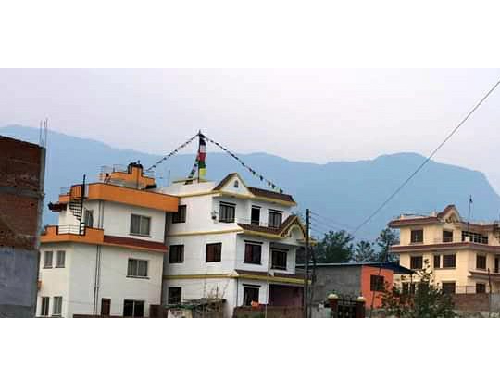 cover the total land area of 5 aana and was strongly recently built after earthquake in this year 2076 B.S with /12 pillar system. Thus these house is very suitable for residential purpose. 1 st floor 5 room,1 toilet,2nd floor 5 room iclude kitchen,1 toilet,3rd floor 4 room include kitchen and 1 toilet.